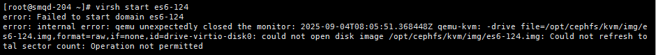 cephfs 支持的最大文件默认为1TB,虚拟机镜像1.5T,启动报错,权限不足;