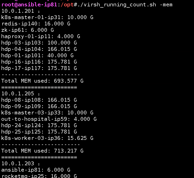 #ansible wlj_list -m script -a "/opt/virsh_running_use_mem.sh" -i wlj_list -o | awk -v RS='\n' '